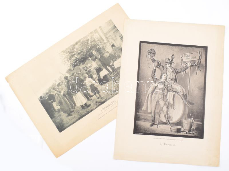 Description: cca 1880-1900 2 db politikai, választási témájú fénynyomat, Szemlér Mihály és Bihari Sándor festményei után, jelzettek a nyomaton, kisebb lapszéli sérülésekkel, lapméret: 41x30 cm és 28,5x40,5 cm
