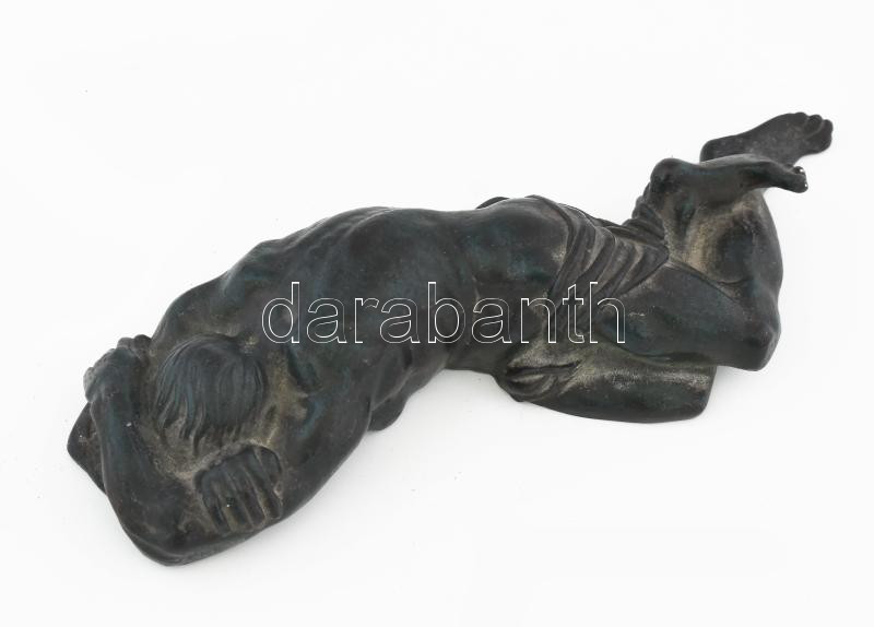 Földön fekvő Jézus. Vas szobor, h: 21 cm