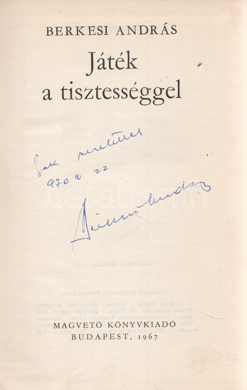 Berkesi András: Játék a tisztességgel. [Regény.] (Dedikált.) Budape...