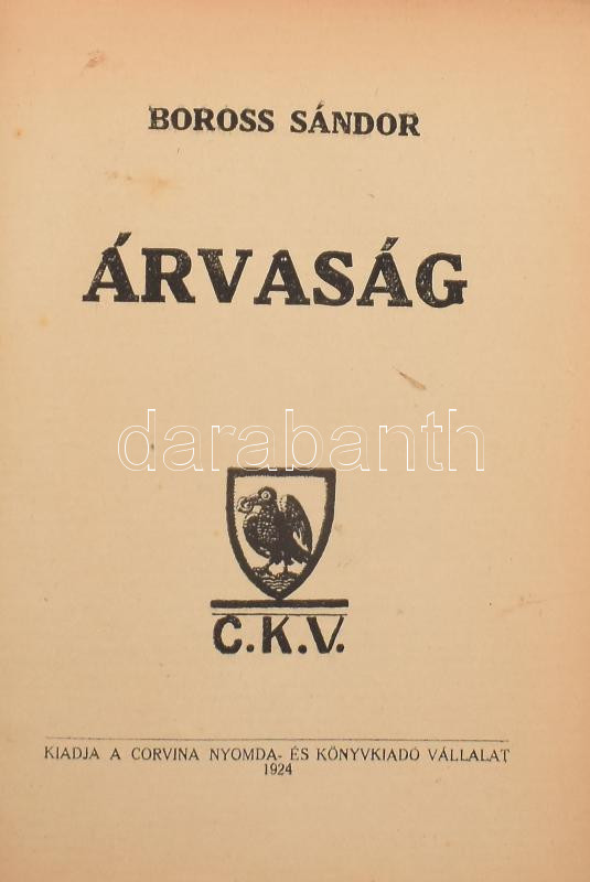 Boross Sándor: Árvaság. A költő, Boross Sándor (1891-1977) által Nagy ... https://www.darabanth.com/en/478-Online-auction/478.0/Books/Books-Other-rarities~298/Boross-Sandor-Arvasag-A-kolto-Boross-Sandor-1891-1977-altal-Nagy-Emma-1895-1957-kolto~II3257855