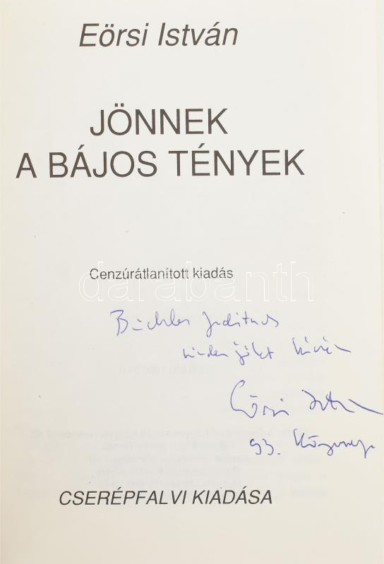 https://www.darabanth.com/en/478-Online-auction/478.0/Books/Books-Other-rarities~298/Eorsi-Istvan-Jonnek-a-bajos-tenyek-DEDIKALT-Cenzuratlanitott-kiadas-Bp-1991-Cserepfalvi~II3257572