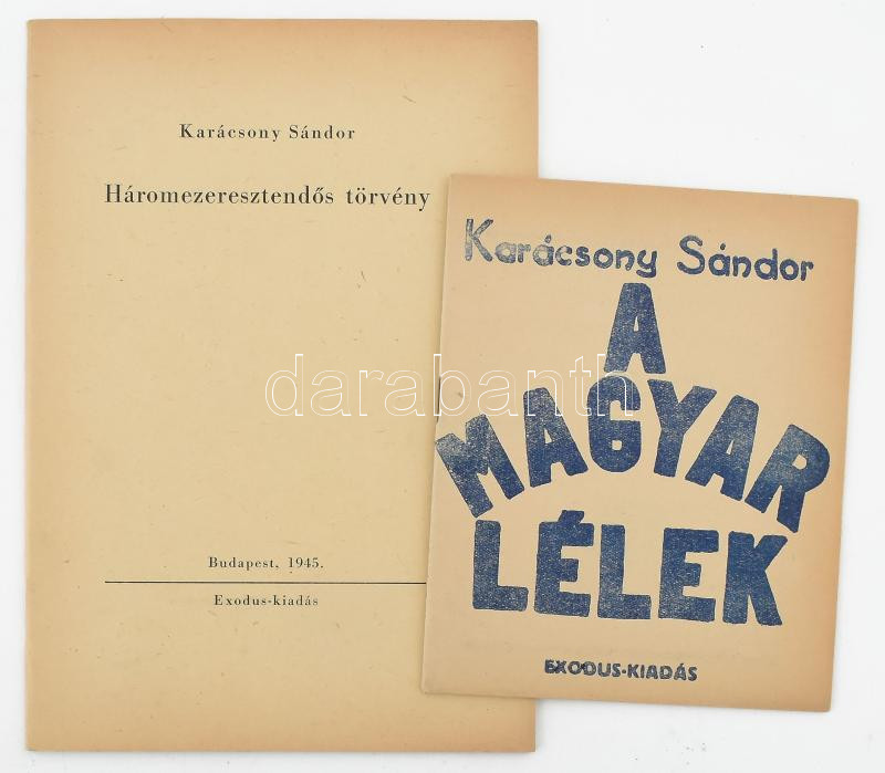 https://www.darabanth.com/en/478-Online-auction/478.0/Books/Books-Other-rarities~298/Karacsony-Sandor-2-muve-A-magyar-lelek-Haromezeresztendos-torveny-Bp-1944-1945-Exodus~II3262066