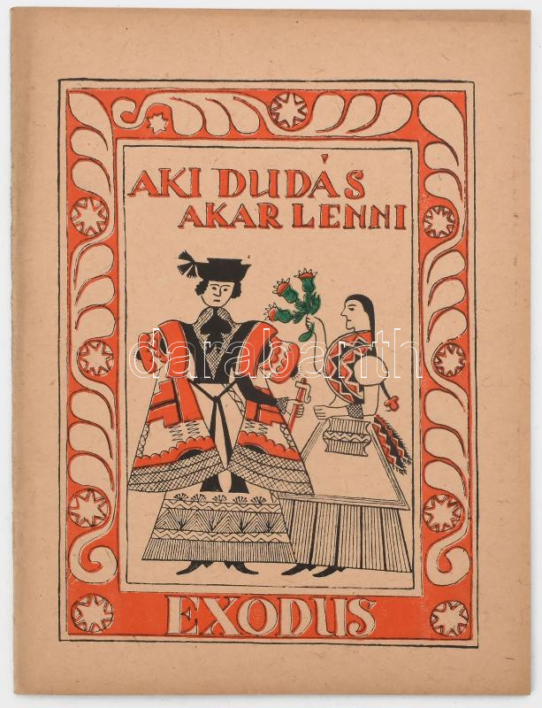 Karácsony Sándor: Aki dudás akar lenni... Kolozsvár, 1943, Exodus, 24 p. A borítót nép minta után Lükő Gábor rajzolta. Kiadói papírkötés.