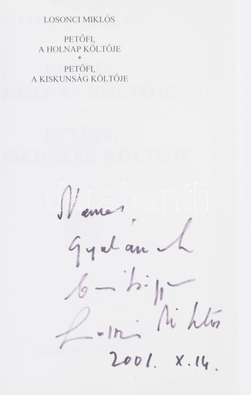 Losonci Miklós: Petőfi a holnap költője. Petőfi a Kiskunság költője. A... https://www.darabanth.com/en/478-Online-auction/478.0/Books/Books-Other-rarities~298/Losonci-Miklos-Petofi-a-holnap-koltoje-Petofi-a-Kiskunsag-koltoje-A-szerzo-Losonci-Miklos~II3262421