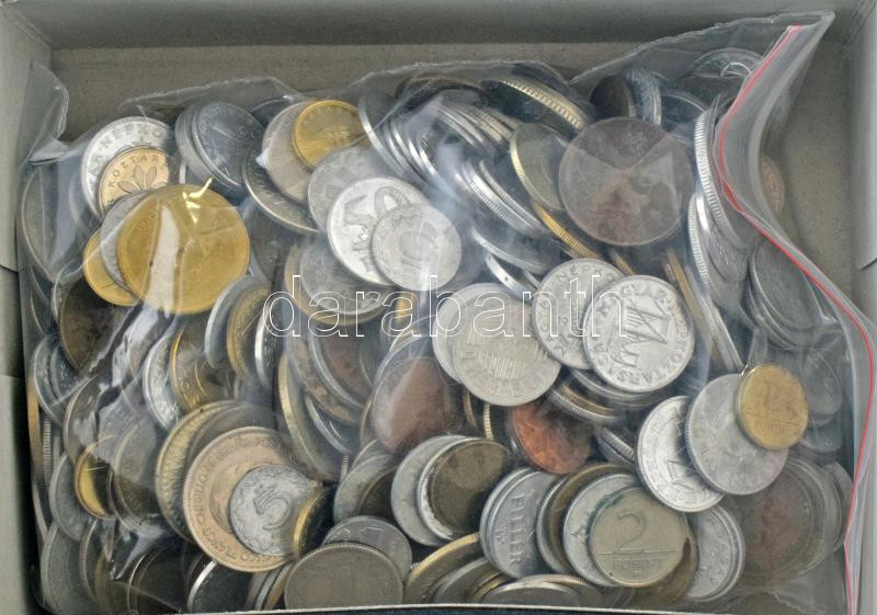Vegyes, magyar és külföldi érmetétel mintegy ~1kg súlyban, T:vegyes Mixed, Hungarian and foreign coin lot (~1kg) C:mixed