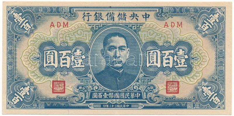 https://www.darabanth.com/en/478-Online-auction/478.0/Numismatics/Worldwide-banknotes~2000015/Kina-Japan-megszallas-1943-100Y-Central-Reserve-Bank-T-XFChina-Japanese-occupation-1943~II3250514