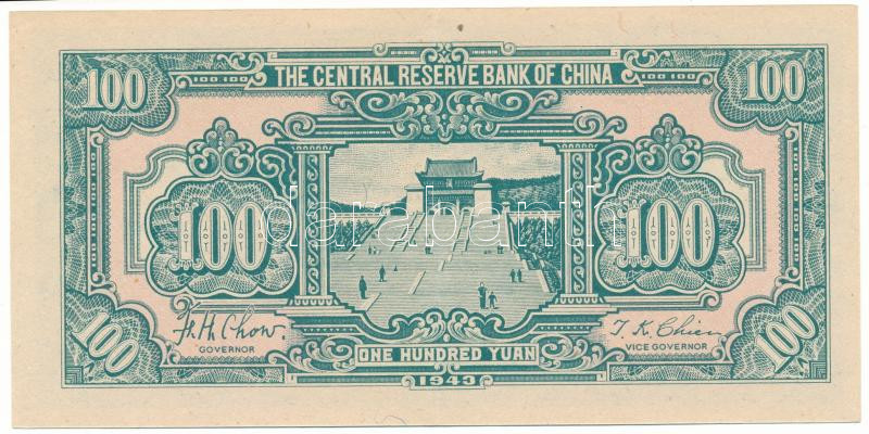Kína / Japán megszállás 1943. 100Y "Central Reserve Bank" T:XF