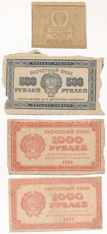 Description: Szovjetunió / Orosz Szocialista Szövetségi Szovjet Köztársaság 1921. 50R + 500R (ívből kézzel kitépve?) + 1000R (2x) T:F-G