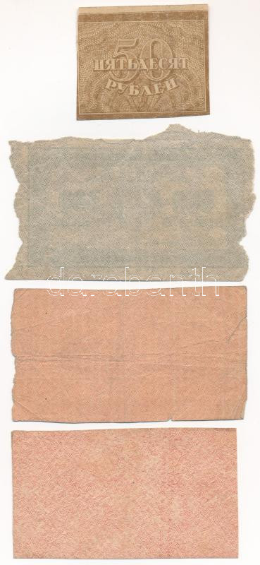 Soviet Union / Russian Socialist Federated Soviet Republic 1921. 50 Roubles + 500 Roubles (torn by hand from a sheet?) + 1000 Roubles (2x) C:F-G
