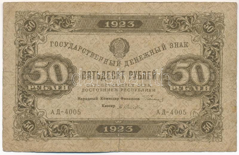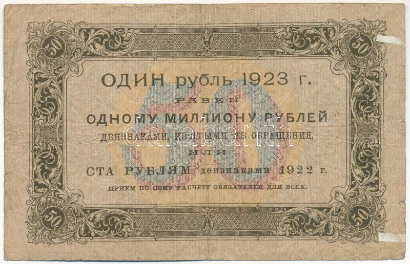 Szovjetunió / Orosz Szocialista Szövetségi Szovjet Köztársaság 1923. 5... https://www.darabanth.com/en/478-Online-auction/478.0/Numismatics/Worldwide-banknotes~2000015/Szovjetunio-Orosz-Szocialista-Szovetsegi-Szovjet-Koztarsasag-1923-50R-T-VG-ragasztasSoviet~II3262311