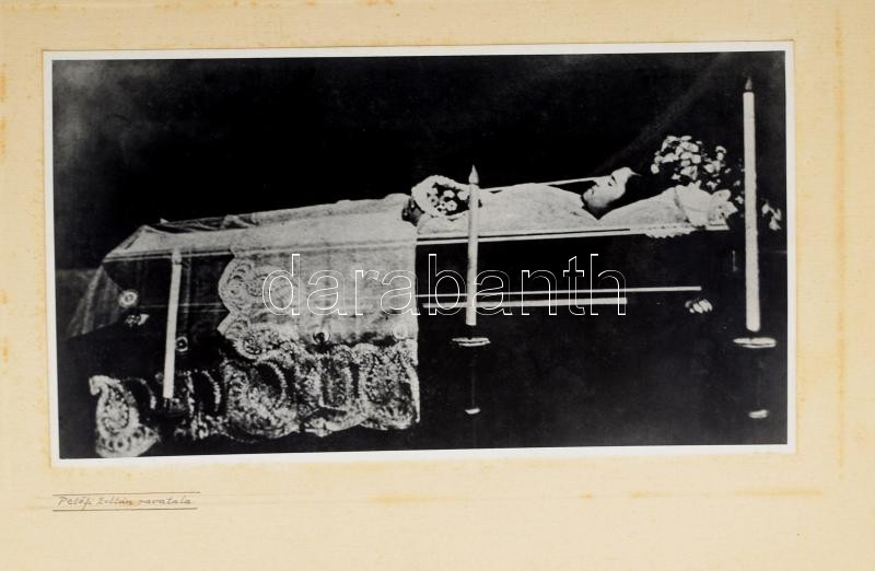 1870/cca 1925 Petőfi Zoltán a ravatalon, Vasberényi Géza fényképmásolata, kartonra kasírozott fotó, 13×23 cm