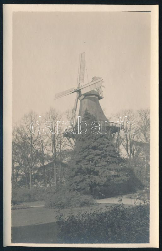 cca 1910 Szélmalom a fenyőfa mögött, fotó, szép állapotban, 13×9 cm / ...