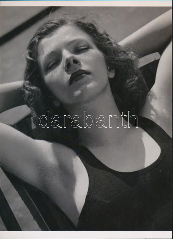Description: cca 1933 Willinger László (1909-1989) később Laszlo Willinger magyar - amerikai fotóművész, hollywoodi glamour fotós felvétele (Napozó hölgy), 1 db modern nagyítás, jelzés nélkül, Pánczél György (1920-?) filmtörténész hagyatékából (film- és színházifotó gyűjteményéből), 21x15 cm