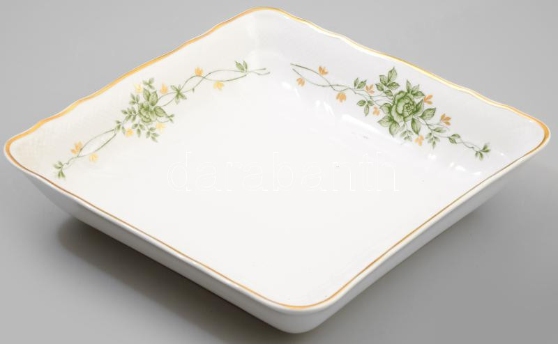 Hollóházi Erika mintás négyszögletes tál, jelzett, 26x26 cm