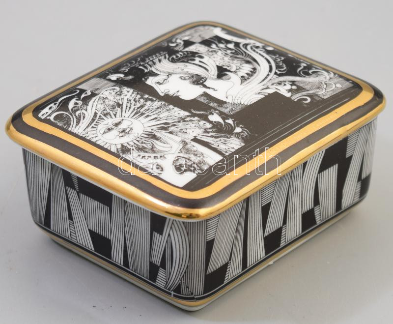 Hollóházi Szász Endre által tervezett porcelán bonbonniere Matricás je...