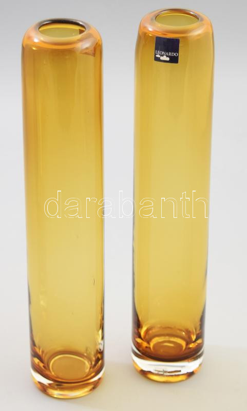 Leonardo borostyánszínű üveg váza, pár, címkével jelzett, m: 30,5 cm