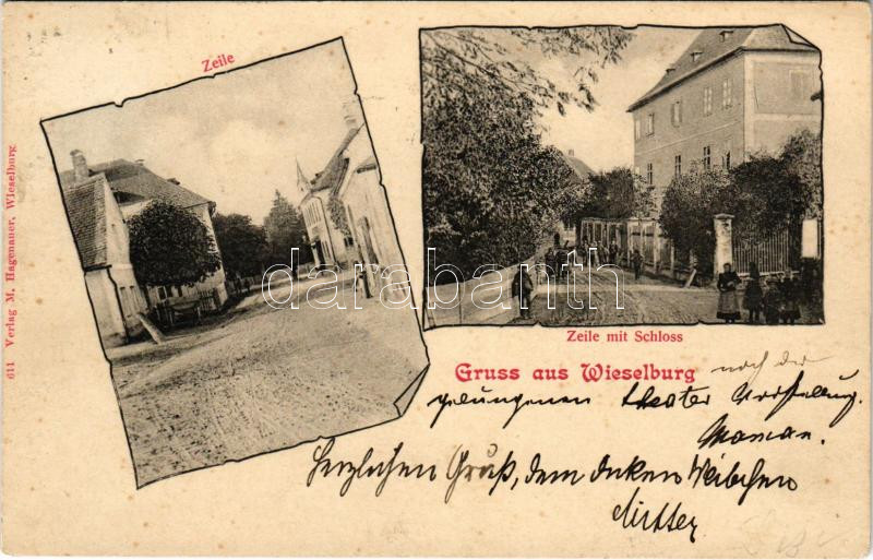 1904 Wieselburg, Zeile mit Schloss / castle. Art Nouveau