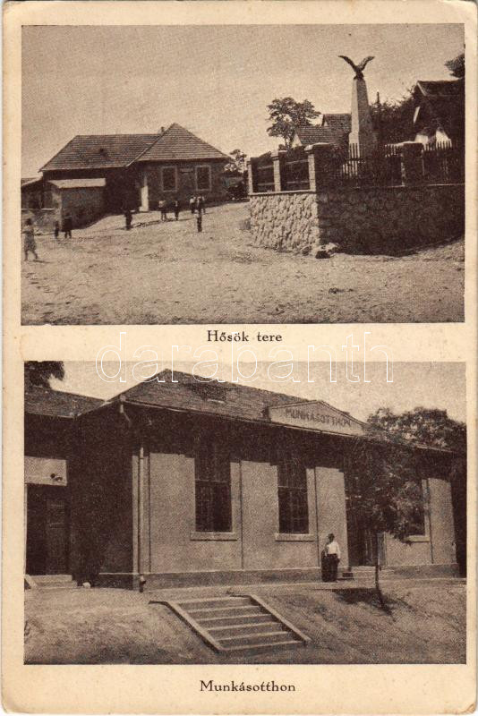 1942 Kesztölc, Hősök tere és szobra, Munkásotthon (EK)