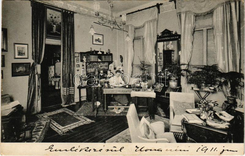 Budapest XIV. Erzsébet Nőiskola, Igazgatói szoba, belső. Ajtósi Dürer sor 37., Klösz György és fia kiadása (fl)