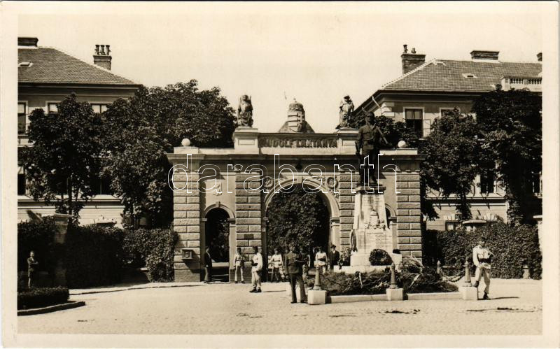 Miskolc, Rudolf gyalogsági laktanya, 10-es honvédek hősi szobor, katonák. Foto Steiner