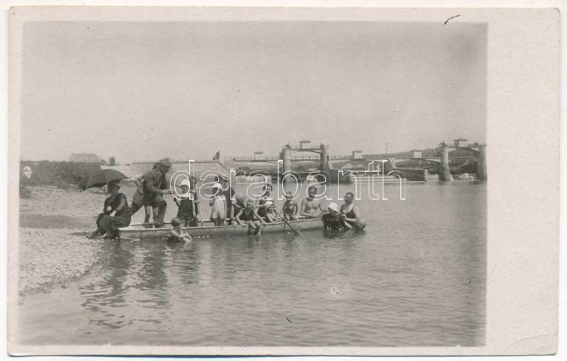 1927 Marosvásárhely, Targu Mures; Maros folyó duzzasztó gátja, csónakázók / Mures river dam, boat. photo (EK)
