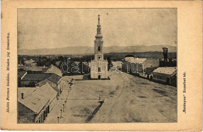 Belényes, Beius; Erzsébet tér, templom. Matits Ferenc kiadása / square...