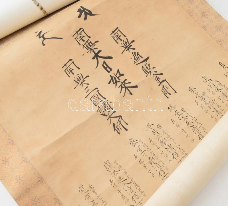 1861 Függő fali tekercs. Buddhista szöveget tartalmazó, Sizuka kolosto... https://www.darabanth.com/en/479-Online-auction/479.0/Art-and-other-collectibles/Antique~500007/1861-Fuggo-fali-tekercs-Buddhista-szoveget-tartalmazo-Sizuka-kolostorbol-Kezzel-festett~II3265632