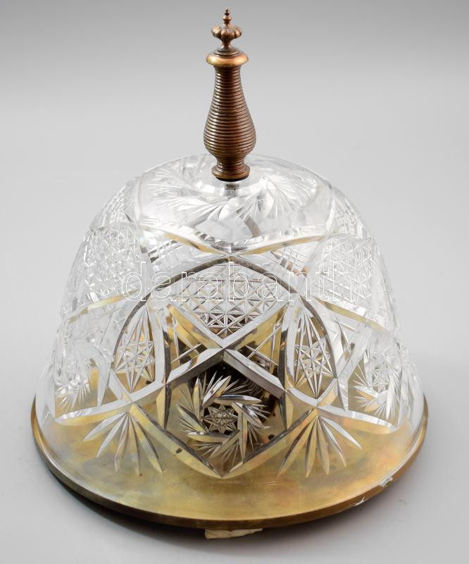 Antik mennyezeti lámpa, bronz szerelékkel, hántolt mintás búrával, d: ...