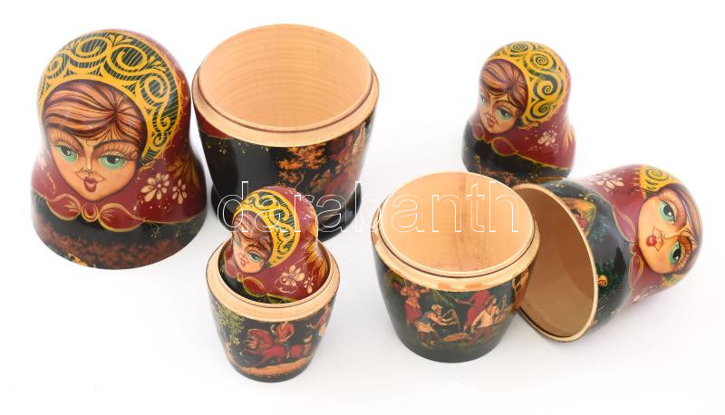 Kézzel festett 7 részes orosz matrjoska baba szett, egyik darabon jelz... https://www.darabanth.com/en/479-Online-auction/479.0/Art-and-other-collectibles/Antique~500007/Kezzel-festett-7-reszes-orosz-matrjoska-baba-szett-egyik-darabon-jelzett-mindegyik-baban-mas-mas~II3267752