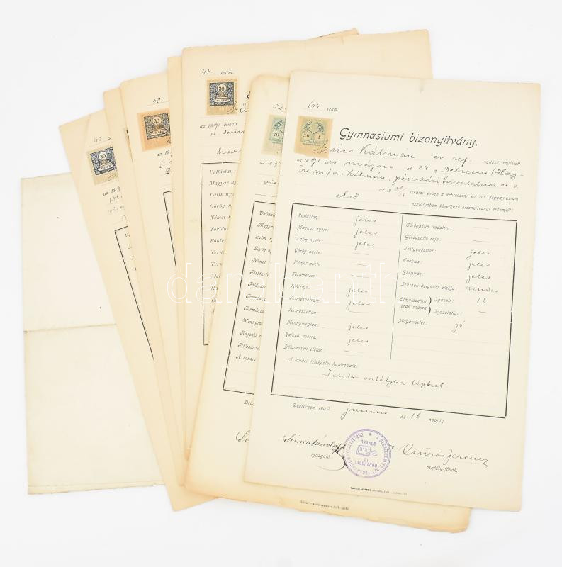 https://www.darabanth.com/en/479-Online-auction/479.0/Art-and-other-collectibles/Documents~500023/1902-1909-Debreceni-Reformatus-Fogimnazium-bizonyitvanyai-es-erettsegi-oklevele~II3270974