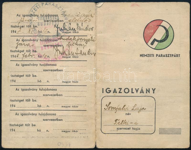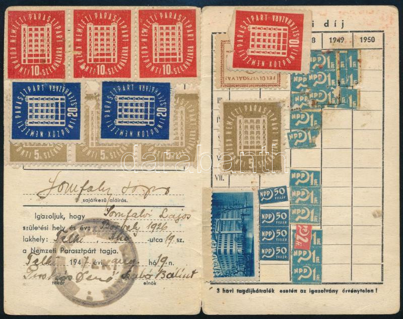https://www.darabanth.com/en/479-Online-auction/479.0/Art-and-other-collectibles/Documents~500023/1947-Nemzeti-Parasztpart-tagsagi-igazolvany-belyegekkel~II3265884