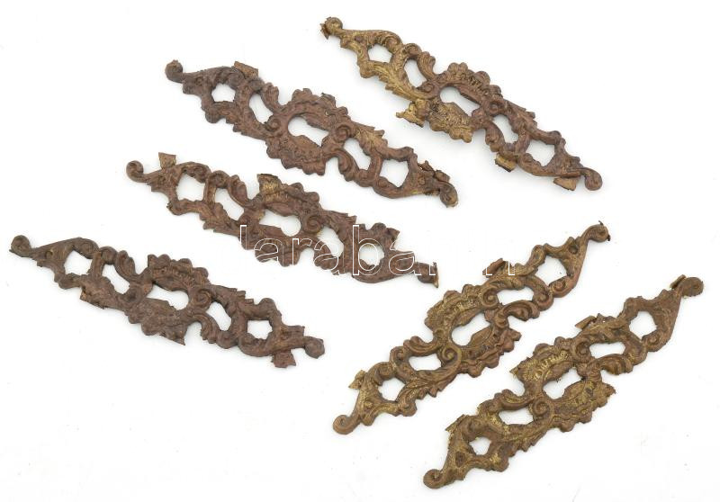 6 darab régi bronz szekrény bútorveret, h: 10 cm