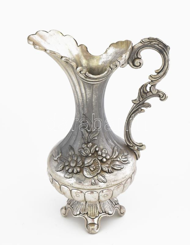 Dísz kancsó, klasszikus mintával. Ezüstözött fém, m: 32 cm
