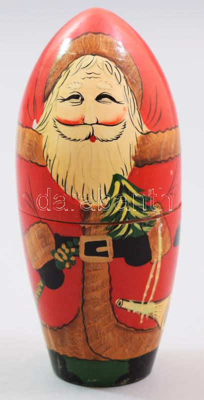 Mikulás mintás 4 részes matrjoska, kézzel festett, sérüléssel, m: 14 c...