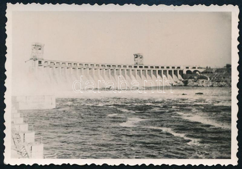 1941 Zaporozsje / Zaporizzsja, Ukrajna, vízi erőmű, orosz front, hátoldalon feliratozott fotó, 6×8,5 cm