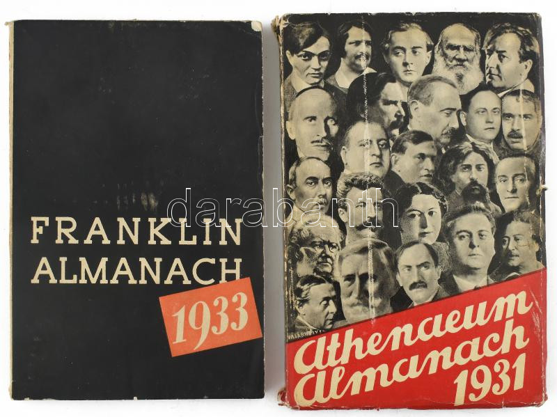1931 Az Athenaeum almanachja. Szerk.: Erényi András. Bp., Athenaeum, 158 p. Kiadói papÃrkötés, kissé sérült borÃtóval. + 1933 Franklin Almanach. Bp., Franklin-Társulat, 128 p. Kiadói papÃrkötés.