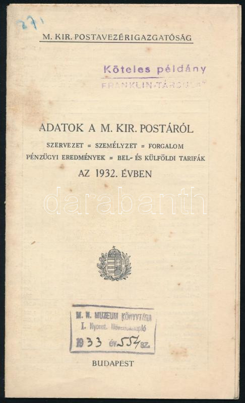 https://www.darabanth.com/en/479-Online-auction/479.0/Art-and-other-collectibles/Printed-Materials~1000013/1932-M-Kir-Postavezerigazgatosag-Adatok-a-M-Kir-Postarol-11p~II3268126