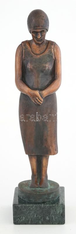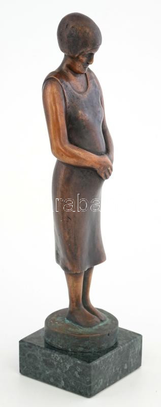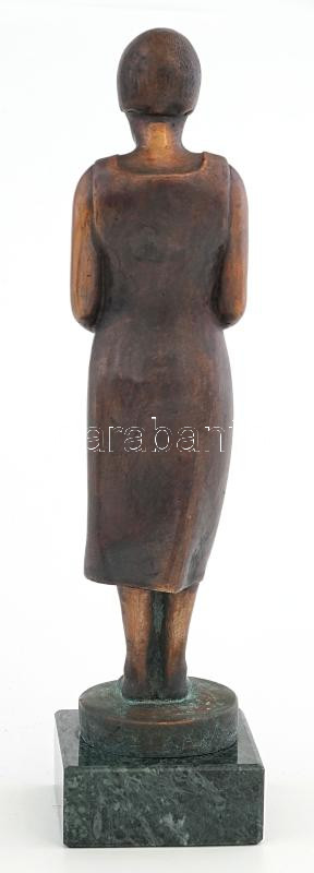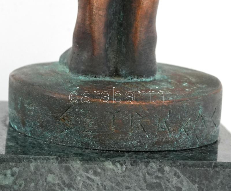 Sztrákos László (1954): Várakozás. Patinázott bronz, márvány talapzaton, művész példán 1/1, jelzett, m: 28 cm