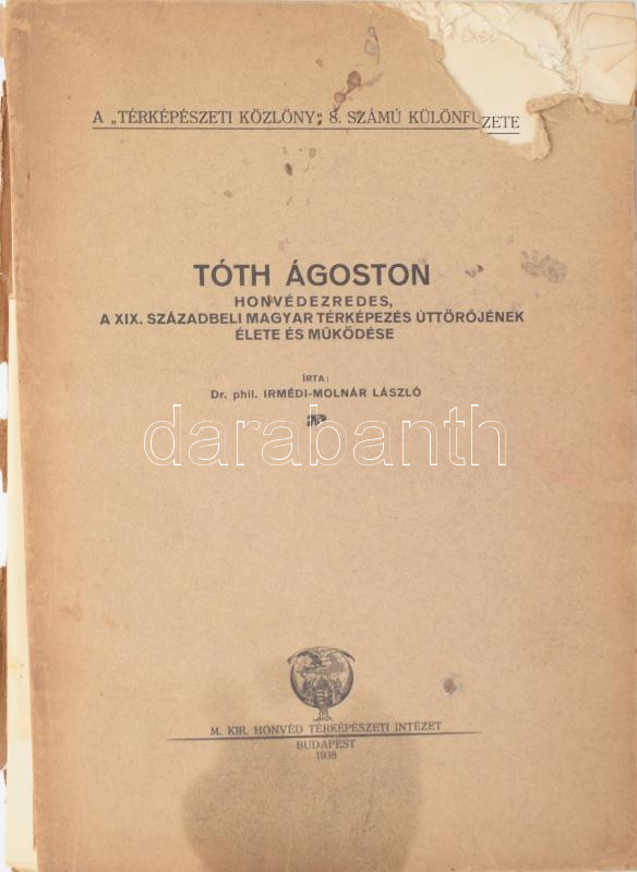 Dr. Phil. Irmédi-Molnár László: Tóth Ágoston honvédezredes, a XIX. szá... https://www.darabanth.com/en/479-Online-auction/479.0/Books/Books-Military~1000022/Dr-Phil-Irmedi-Molnar-Laszlo-Toth-Agoston-honvedezredes-a-XIX-szazadbeli-magyar-terkepezes~II3272375