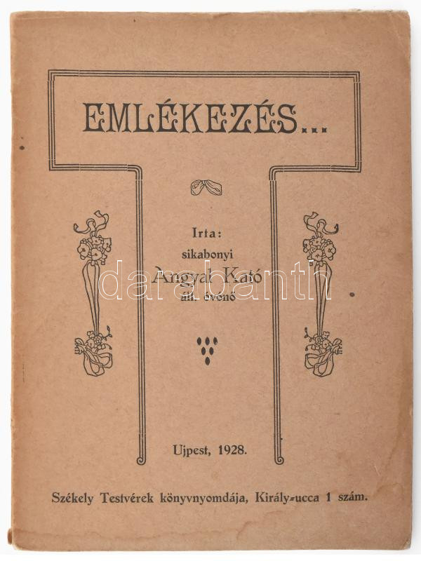 Angyal Kató: Emlékezés. Ujpest, 1928, Székely Testvérek, papírkötésben