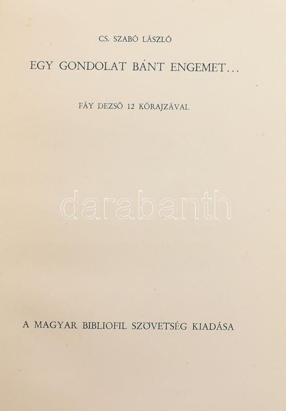 Cs. Szabó László: Egy gondolat bánt engemet... Fáy Dezső 12 kőrajzával... https://www.darabanth.com/en/479-Online-auction/479.0/Books/Books-Other-rarities~1000037/Cs-Szabo-Laszlo-Egy-gondolat-bant-engemet-Fay-Dezso-12-korajzaval-Bp-1936-Magyar~II3267121
