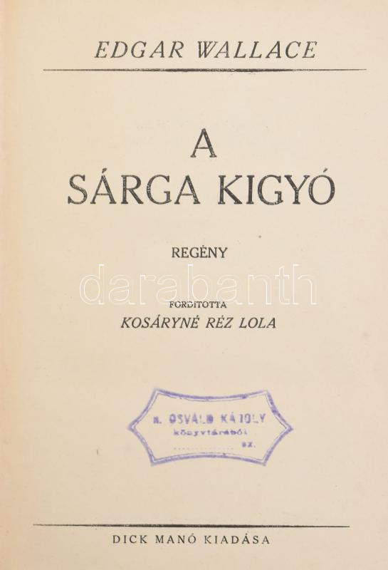 Edgar Wallace 3 műve: A sárga kígyó, A Polyanthia titka, A repülő gárd... https://www.darabanth.com/en/479-Online-auction/479.0/Books/Books-Other-rarities~1000037/Edgar-Wallace-3-muve-A-sarga-kigyo-A-Polyanthia-titka-A-repulo-garda-Bp-Dick-Mano-~II3272260