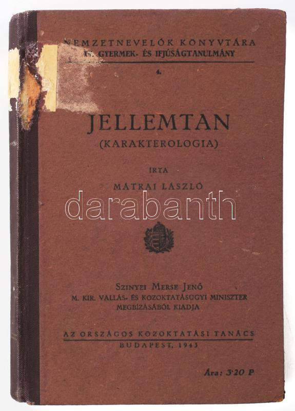 Mátrai László: Jellemtan. (Karakterológia.) Nemzetnevelők Könyvtára IV... https://www.darabanth.com/en/479-Online-auction/479.0/Books/Books-Other-rarities~1000037/Matrai-Laszlo-Jellemtan-Karakterologia-Nemzetnevelok-Konyvtara-IV-Gyermek-es~II3270129