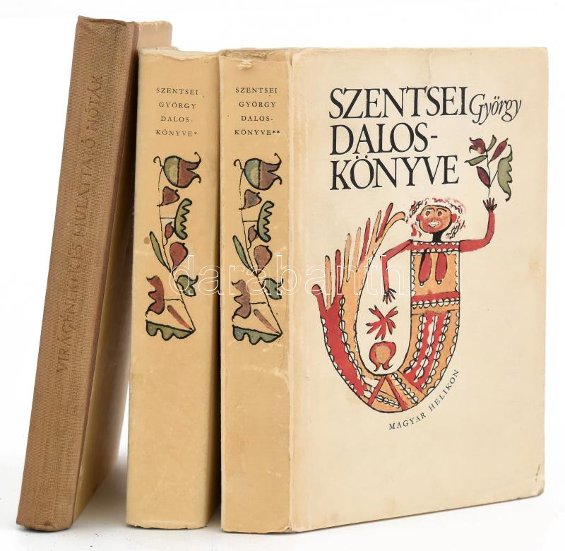 Szentsei György daloskönyve I-II. kötet. Sajtó alá rendezte, az előszót és a jegyzeteket írta: Varga Imre. Bibliotheca Historica. Bp., 1977, Helikon. Hasonmás kiadás. Kiadói papírkötés/kartonált papírkötés, kiadói papír védőborítóban. + Virágénekek és mulatónóták. XVII. és XVIII. század. Összeáll. és jegyzeteket írta: Stoll Béla. Bp., 1956, Magvető. Kiadói félvászon-kötés, kopott, foltos borítóval.