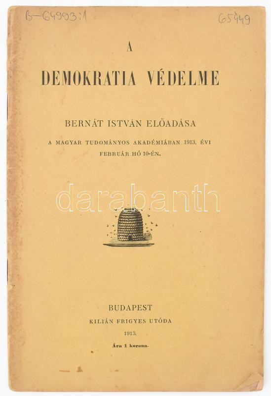 A demokrata védelme. Bernát István előadása a Magyar Tudományos Akadém... https://www.darabanth.com/en/479-Online-auction/479.0/Books/Books-Social-sciences~2000105/A-demokrata-vedelme-Bernat-Istvan-eloadasa-a-Magyar-Tudomanyos-Akademiaban-1913-evi-februar-ho~II3266900