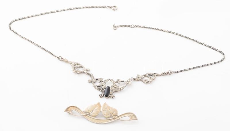 Ezüst (Ag) bross és nyakék, jelzés nélkül, kövekkel, bruttó 18g