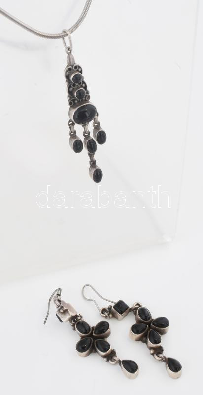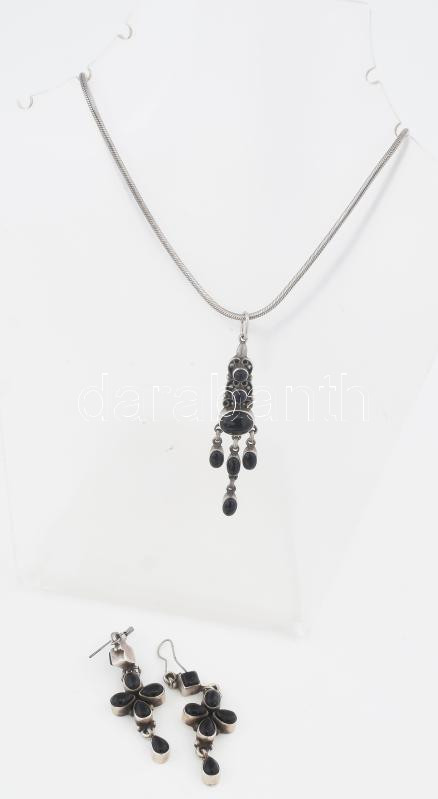 Ezüst (Ag) ékszer szett. Nyaklánc és fülbevaló Fekete köves. Jelzett, ...