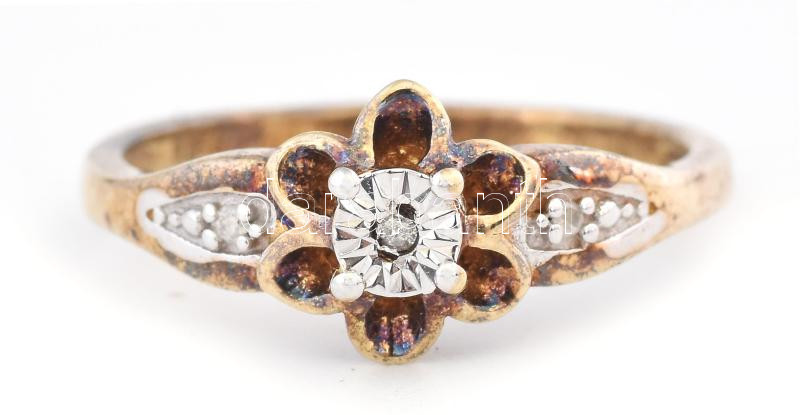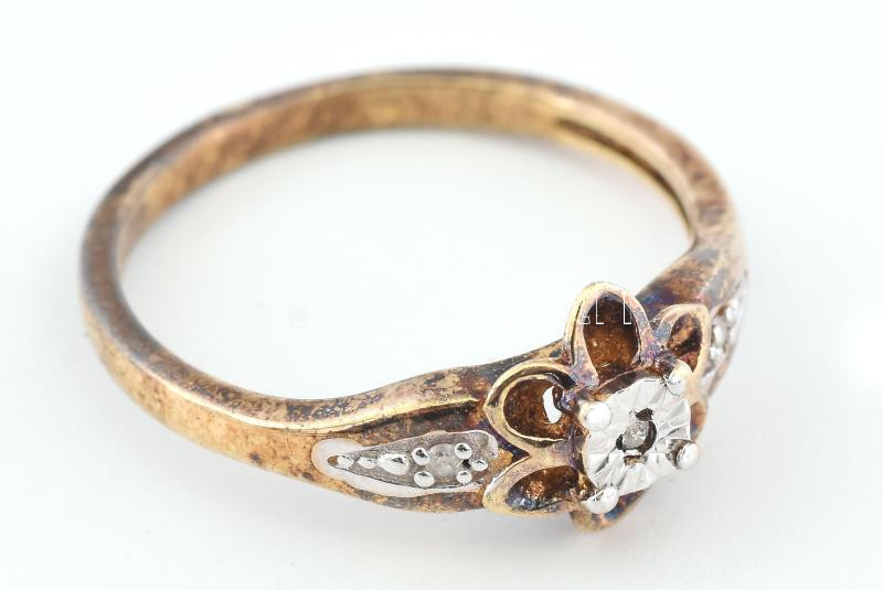 Ezüst (Ag) gyűrű 0,02ct brillel ékítve, bruttó: 2,37 g , m: 56. tanusí...