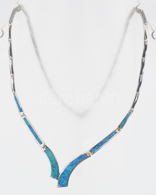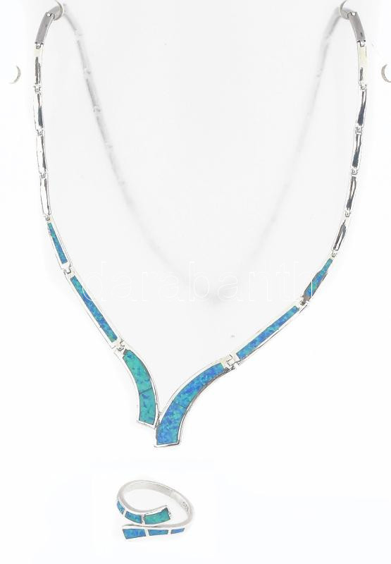 Ezüst (Ag) nyaklánc és gyűrű szett, mesterséges opállal, jelzett br 17...