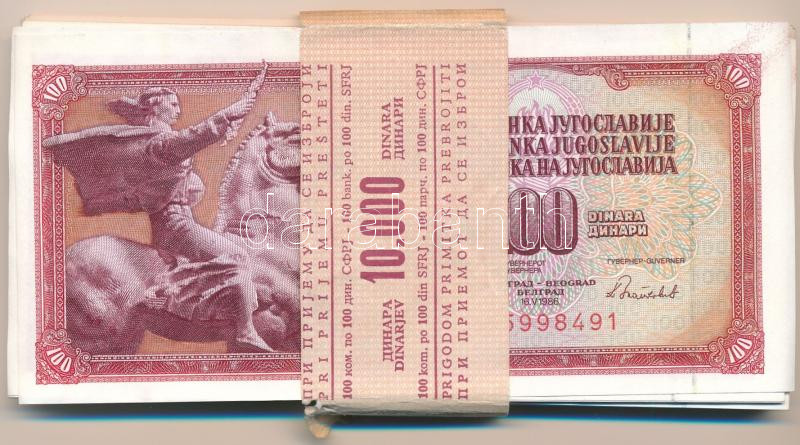 Jugoszlávia 1986. 100D (64x) sorszámkövető sorozatokkal, eredeti banki... https://www.darabanth.com/en/479-Online-auction/479.0/Numismatics/Worldwide-banknotes~1500015/Jugoszlavia-1986-100D-64x-sorszamkoveto-sorozatokkal-eredeti-banki-kotegelovel-T-AU-VF~II3270686